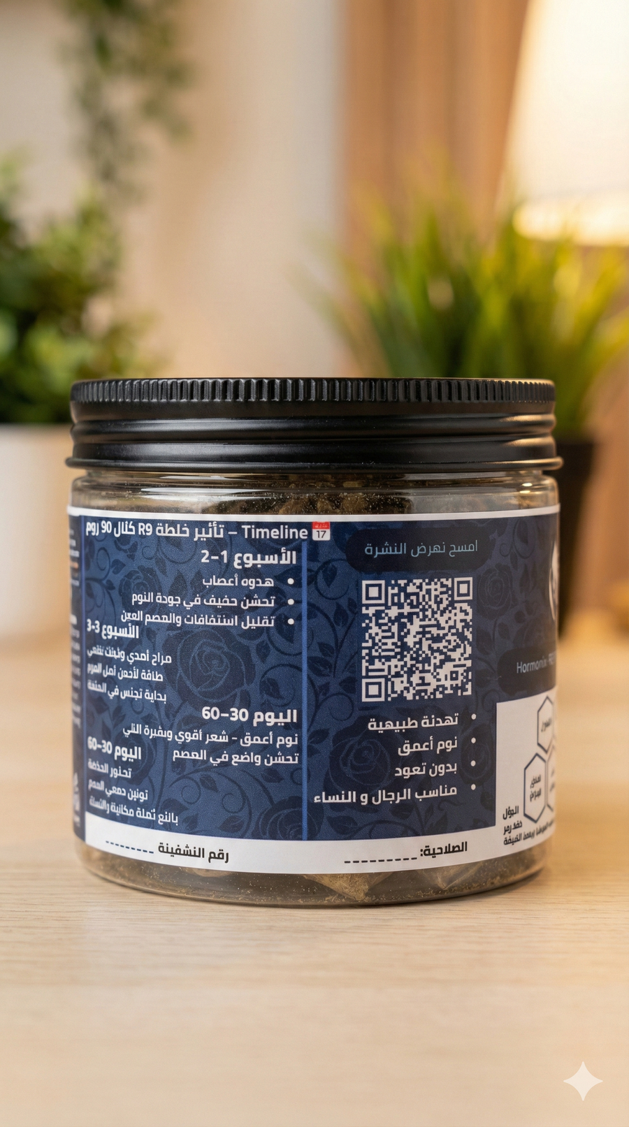 لو يومك زحمة ومسؤولياتك كتير، ومحتاج تفضل "في تلاجة" مهما كان الضغط… R9 معمول عشان يسند جهازك العصبي ويساعدك تدخل في حالة تركيز وهدوء، ويدعم ثباتك الانفعالي بشكل طبيعي — كجزء من روتينك اليومي للأداء العالي 🌿